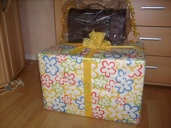 Das große Geschenk ist von meinen Schwiegereltern, die Truhe ist von