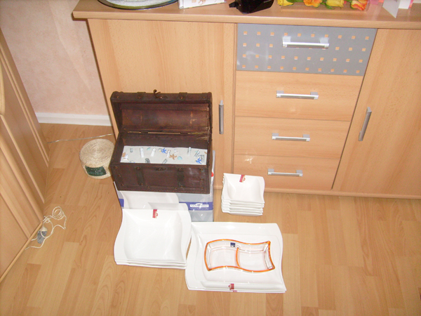 Nochmal aus der Nähe die Truhe und das Geschirr...