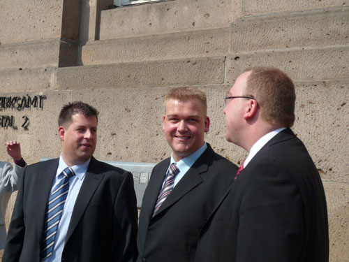 Im Hintergrund sieht man Sarah, Jérôme und Bernd auf der linken Seite