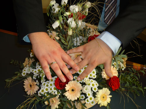 So, es ist vollbracht. Das Blumengesteck stand auf dem Traualtar.