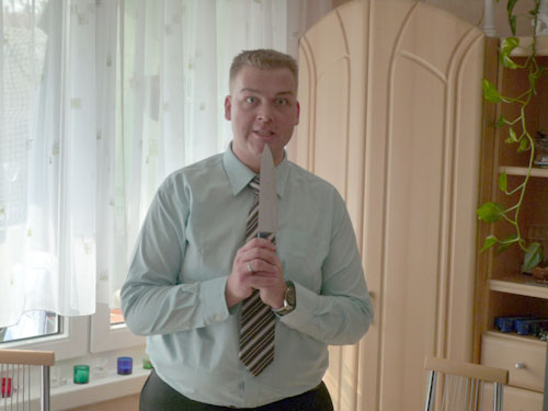 Natürlich nicht. Das Messer war doch nur für die Hochzeitstorte gedacht :)