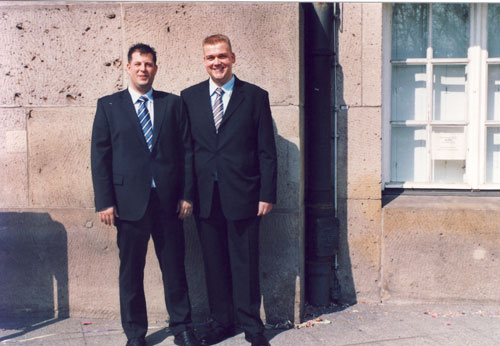 Vor der Trauung. Mein Mann, ich und mein Bruder.
